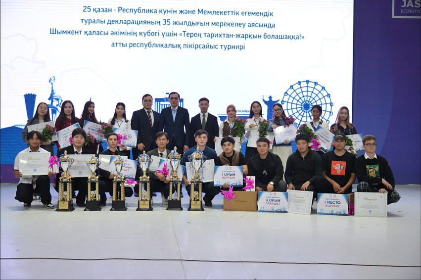 Екі күн алдын Шымкент қаласында басталған пікірсайыс турнирінің жеңімпаздары бүгін салтанатты түрде марапатталды. Республика күні мен Қазақстан Республикасының мемлекеттік егемендігі туралы декларацияның қабылданғанына 35 жыл толуына орай ұйымдастырылған «Терең тарихтан – жарқын болашаққа!» атты республикалық пікірсайыс турнирі жоғары деңгейде өтті.