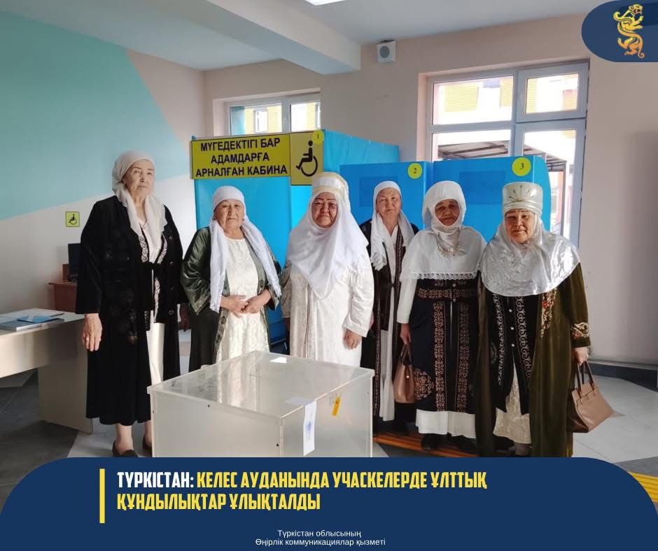Республикалық референдум аясында Келес ауданының тұрғындары белсенділік танытып, өз таңдауларын жасауда. Аудан тұрғындары, қариялар ұлттық киім киіп, тұрғылықты мекенжайлары бойынша учаскелерге келіп дауыс беруде. Сондай-ақ, аудан өнерпаздары домбыра тартып, дауыс беруге келушілерге қолдау көрсетуде.