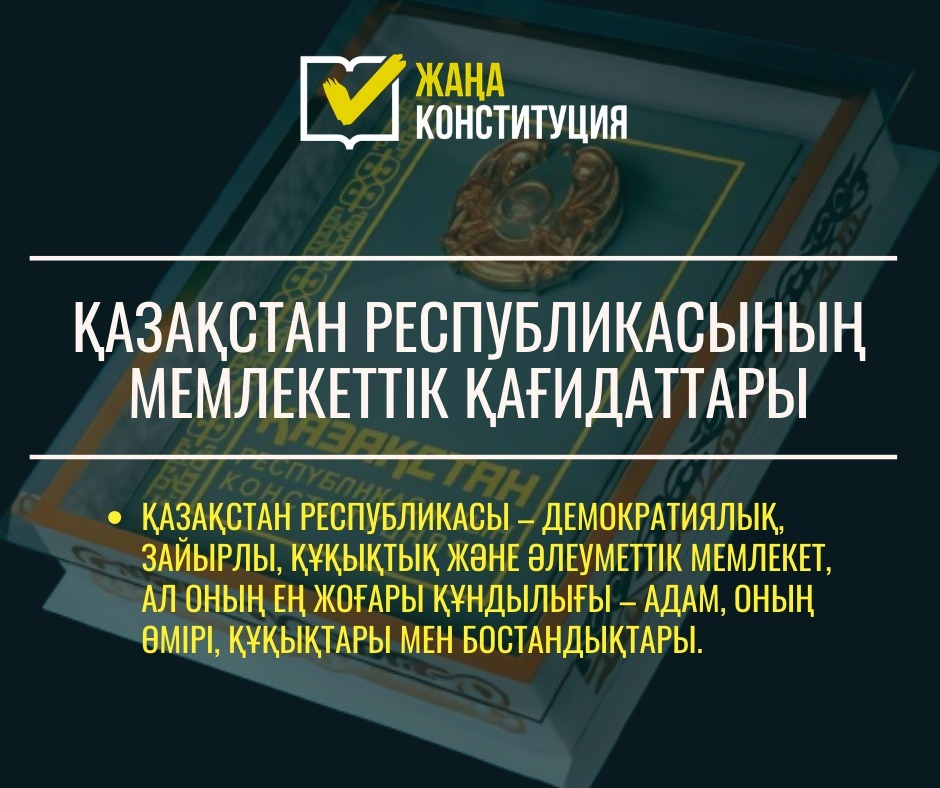 Жаңа Конституцияда Қазақстан Республикасының мемлекеттік құрылымының негізгі қағидаттары айқын көрсетілген. Негізгі заңға сәйкес, Қазақстан Республикасы – демократиялық, зайырлы, құқықтық және әлеуметтік мемлекет. Бұл қағидаттар елдің мемлекеттік басқару жүйесінің негізін құрайды және қоғамның тұрақты дамуын қамтамасыз етуге бағытталған.