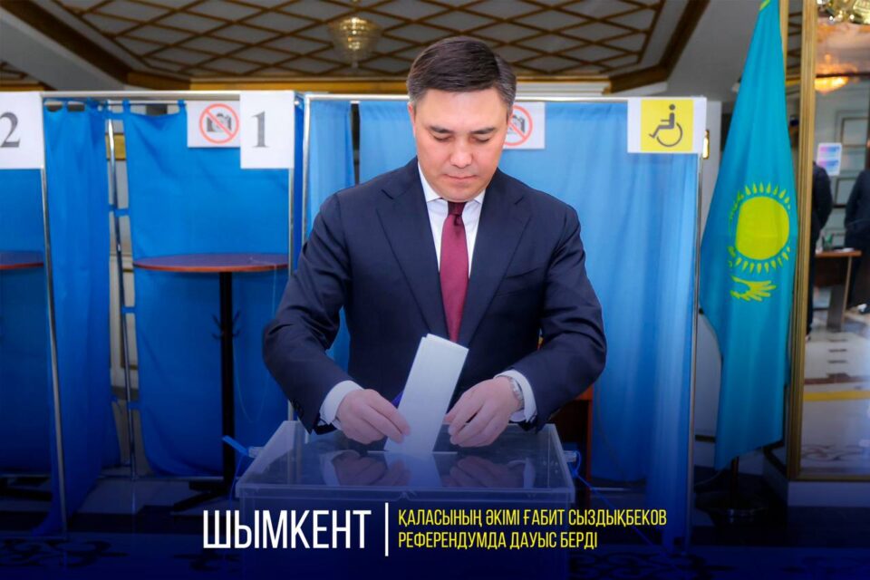 Аким Шымкента Габит Сыздыкбеков принял участие в республиканском референдуме. Глава мегаполиса проголосовал на участке №231, расположенном в здании «Түркістан сарайы».