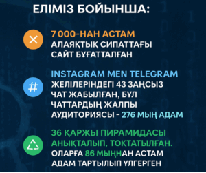 - Instagram мен Telegram желілеріндегі 43 заңсыз чат жабылған, бұл чаттардың жалпы аудиториясы – 276 мың адам;